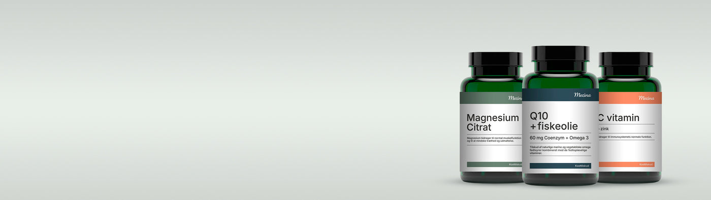 Mezina har samlet mere end 40 års erfaring i en ny, grøn serie af enkle vitaminer og velvalgte kombi-produkter. Serien er skabt til dig, der vil gøre det let at supplere kosten med velkendte næringsstoffer i hverdagen – fra klassisk fiskeolie til udvalgte mineraler og nøje sammensatte formler.