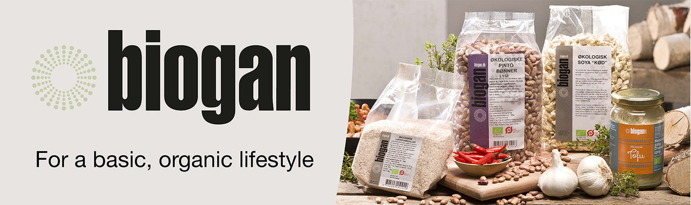 Køb alt hvad hjertet begærer inden for lækre økologiske fødevarer, fra danske Biogan. Du finder ingredienser til både madlavning, bagning, drikke, snacks og meget mere.