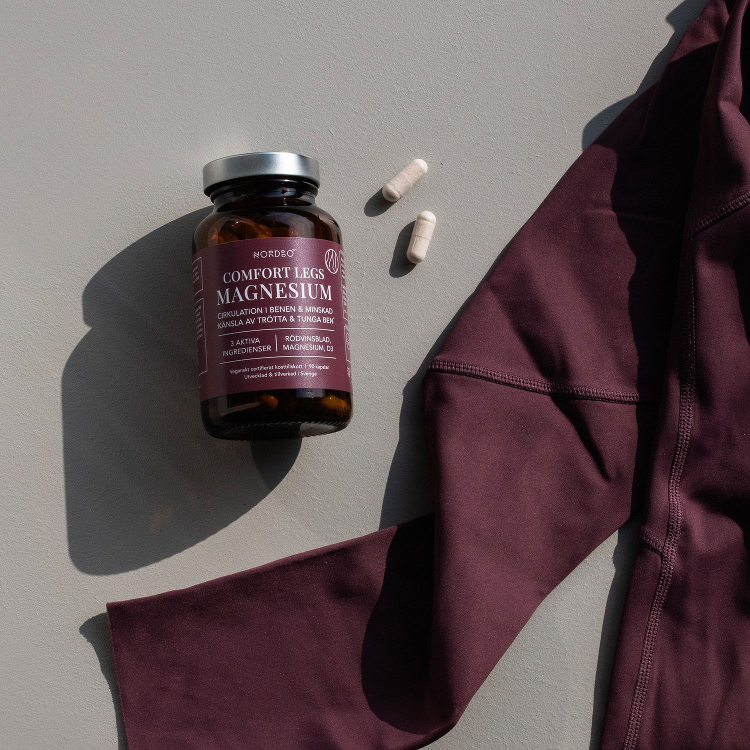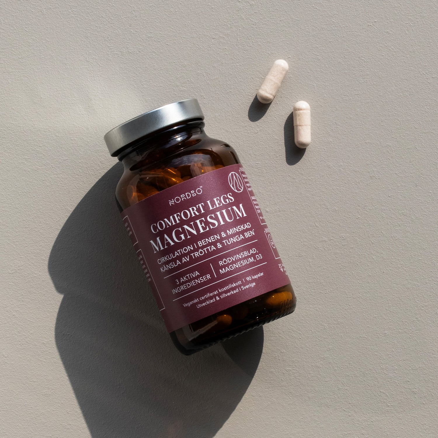 Nordbo Comfort Legs Magnesium er designet til behagelige ben med forbedret blodcirkulation. Med 3 aktive ingredienser: Magnesium, røde vinblade og vitamin D3.