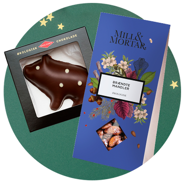 Julekalender m. fyldte chokolader & dragéer Ø