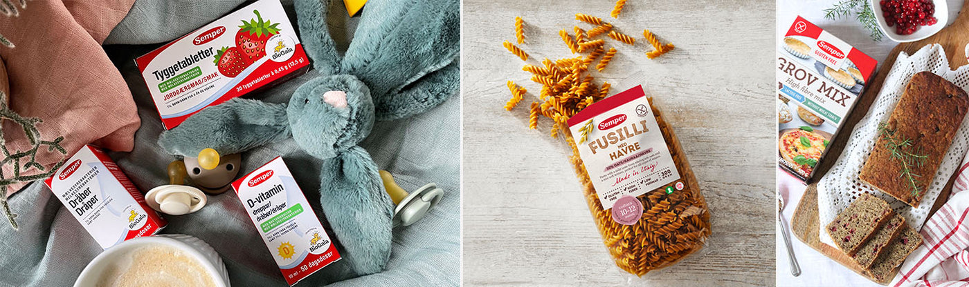 Vælg Semper hvis du ønsker næringsrige, sunde og smagfulde fødevarer. Tåler du ikke gluten, bør du helt sikkert prøve nogle af de lækre glutenfri fødevarer. De er fyldte med fibre og bidrager til en god mæthed hele dagen. Til dine børn skal du vælge mad fra Semper hvis du ønsker, at de skal have masser af næring og sundhed. Modermælkserstatningerne, Allomin, er af utroligt høj kvalitet og et af de mest populære mærker inden for området.