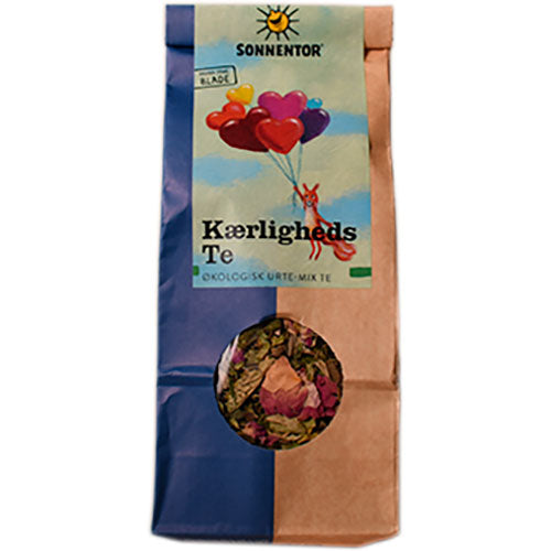 Kærligheds Te er en økologisk urte-mix te som overrasker med aromatiske, blomster- og fine citronsmag. Den er ideel til desserter og kager.