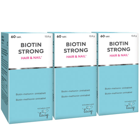 Et kosttilskud udviklet til hår og negle. Biotin og zink bidrager begge til at vedligeholde normalt hår og negle, og findes derfor i ekstra høje doser Vitabalans Biotin. -