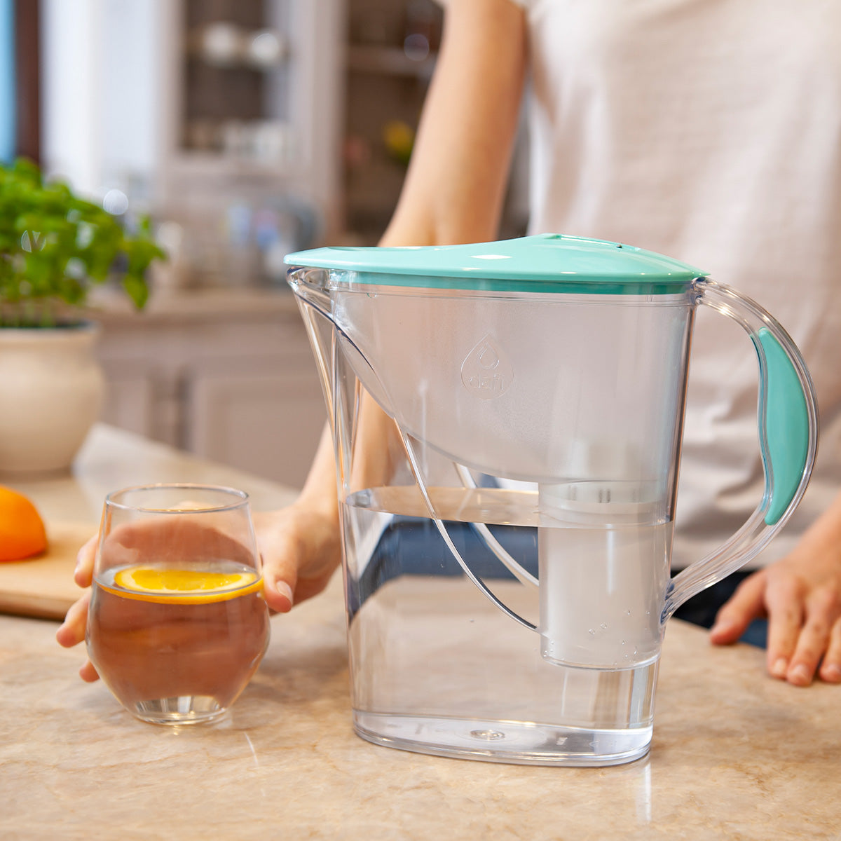Filteret giver op til 150 liter vand og bør skiftes 1 gang om måneden. Kanden har en manuel indikator så man husker at skifte filteret.