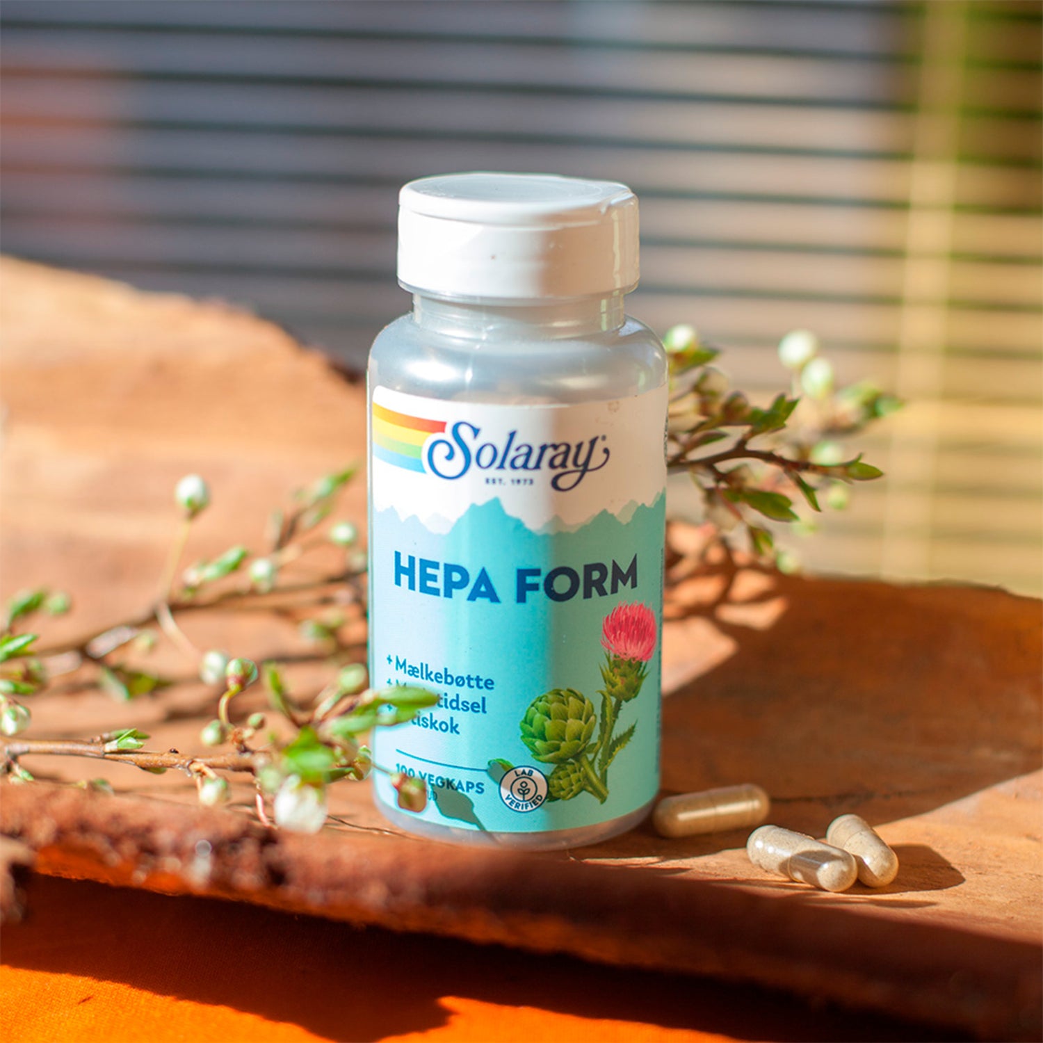 Hepa Form er en urteblanding med bl.a. mælkebøtte, marietidsel, artiskok og pebermynte.