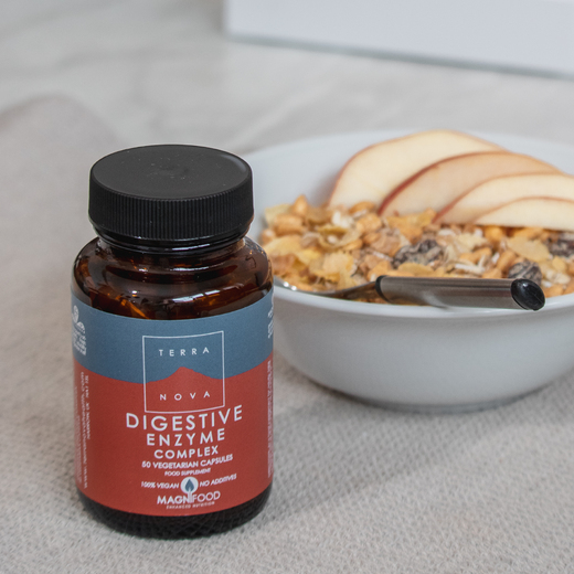 Med sit indhold af fordøjelsesenzymer bidrager Terranova Digestive Enzyme Complex til en sund og normal fordøjelse.